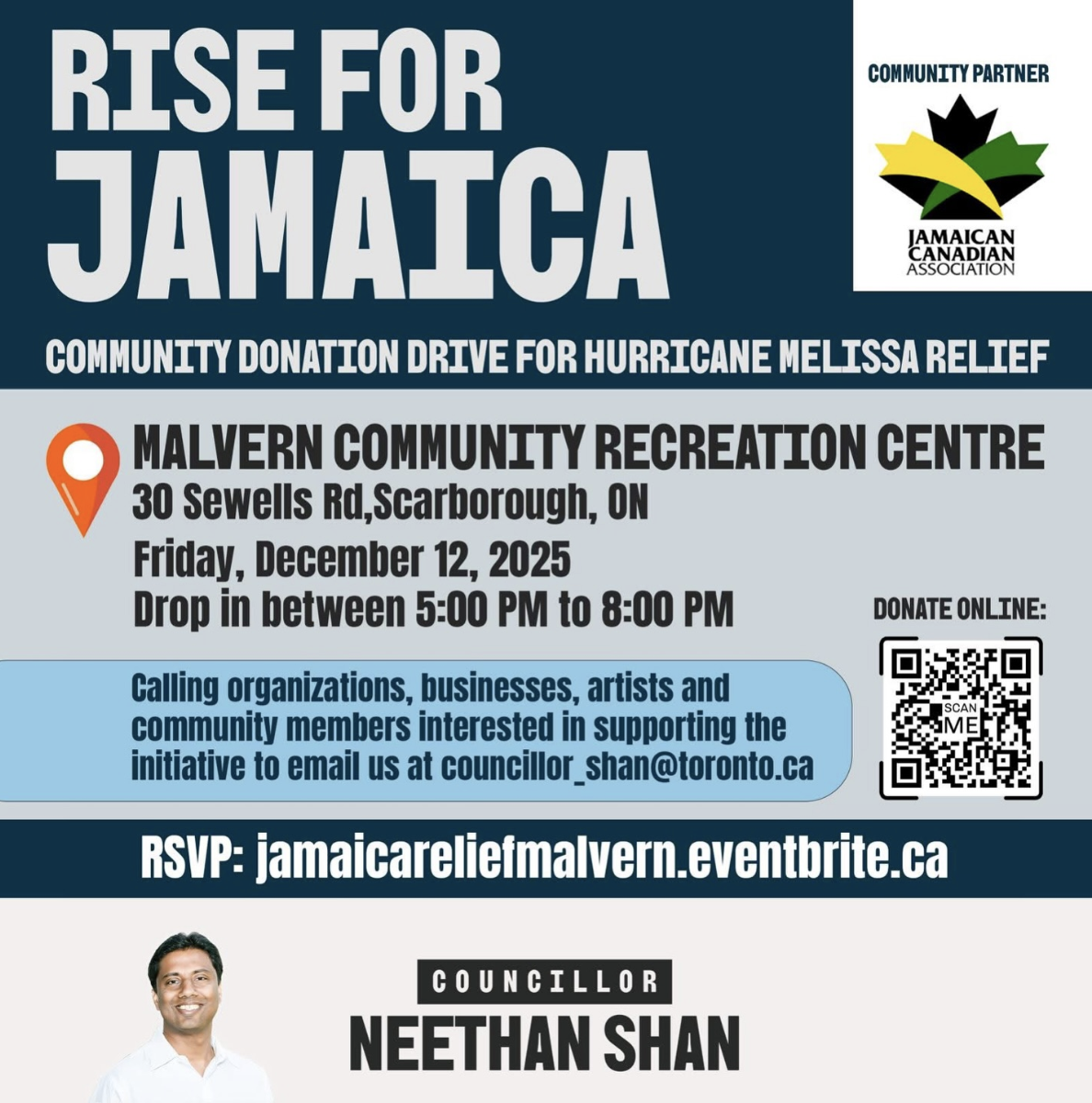 Dec 10 Love0 Jamaica Fundraiser By Admin Events Community Donation drive for Hurricane Melissa Relief Join us at the Malvern Community Recreation Centre…Read More
