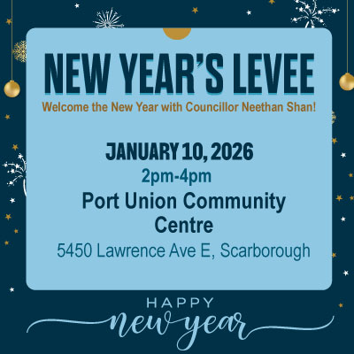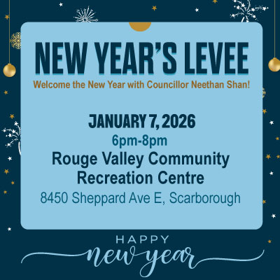 New Year's Levee Welcome the New Year with Councillor Neethan Shan! January 7, 2026. Rouge...