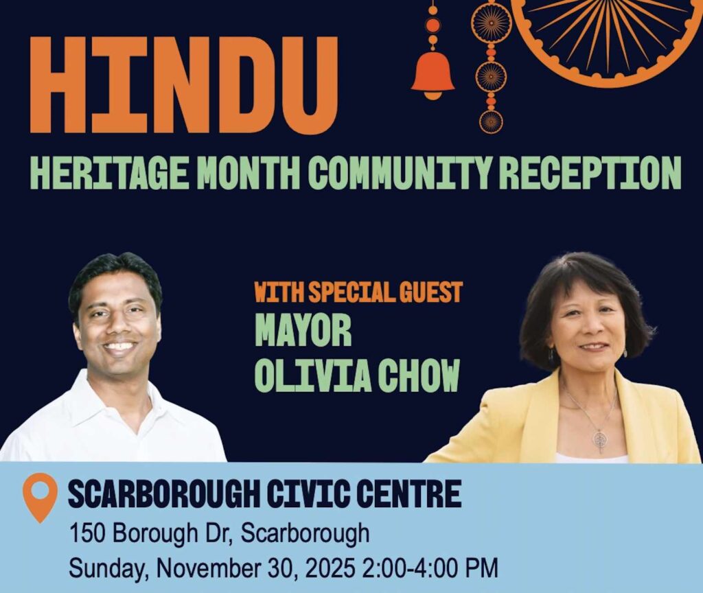November is Hindu Heritage Month, a time to recognize the contributions of Hindu Canadians. Join us on November 30 at the Scarborough Civic Centre as we celebrate together with the community, and with Mayor Olivia Chow.
